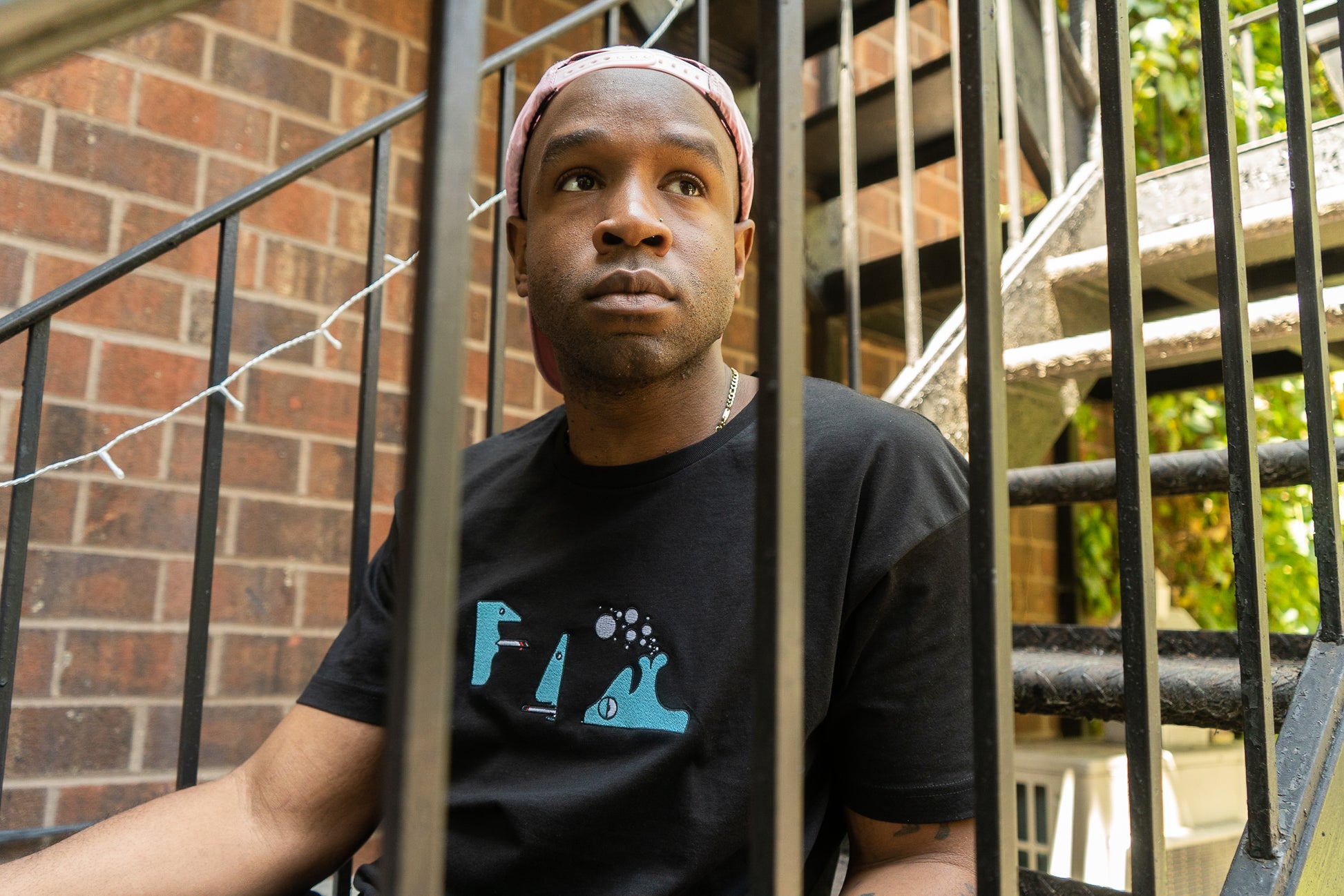 Embroidered rendition of Ryan Cronin's painting, "Blue Habitual"