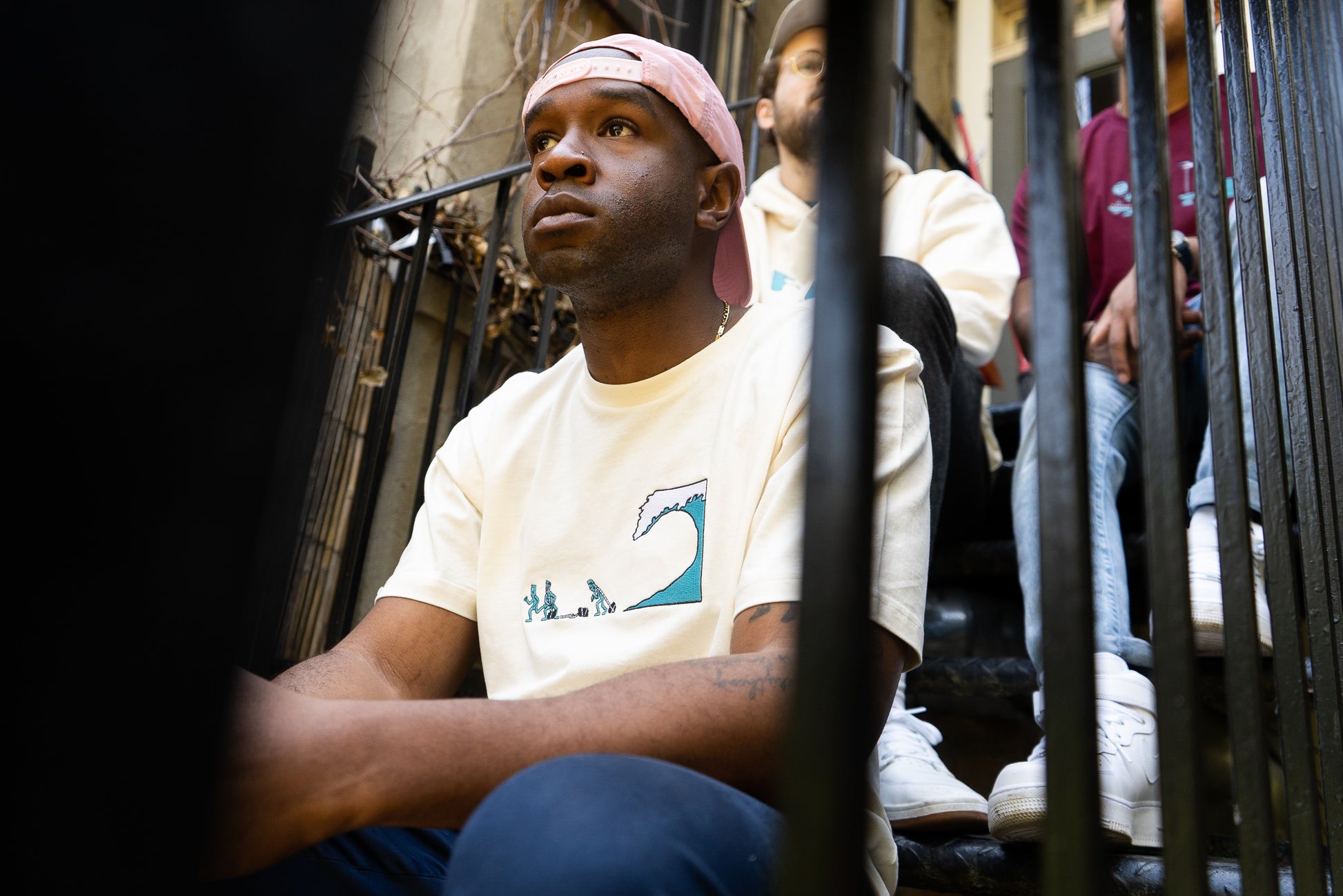 Embroidered rendition of Ryan Cronin's painting, "Breakpoint"
