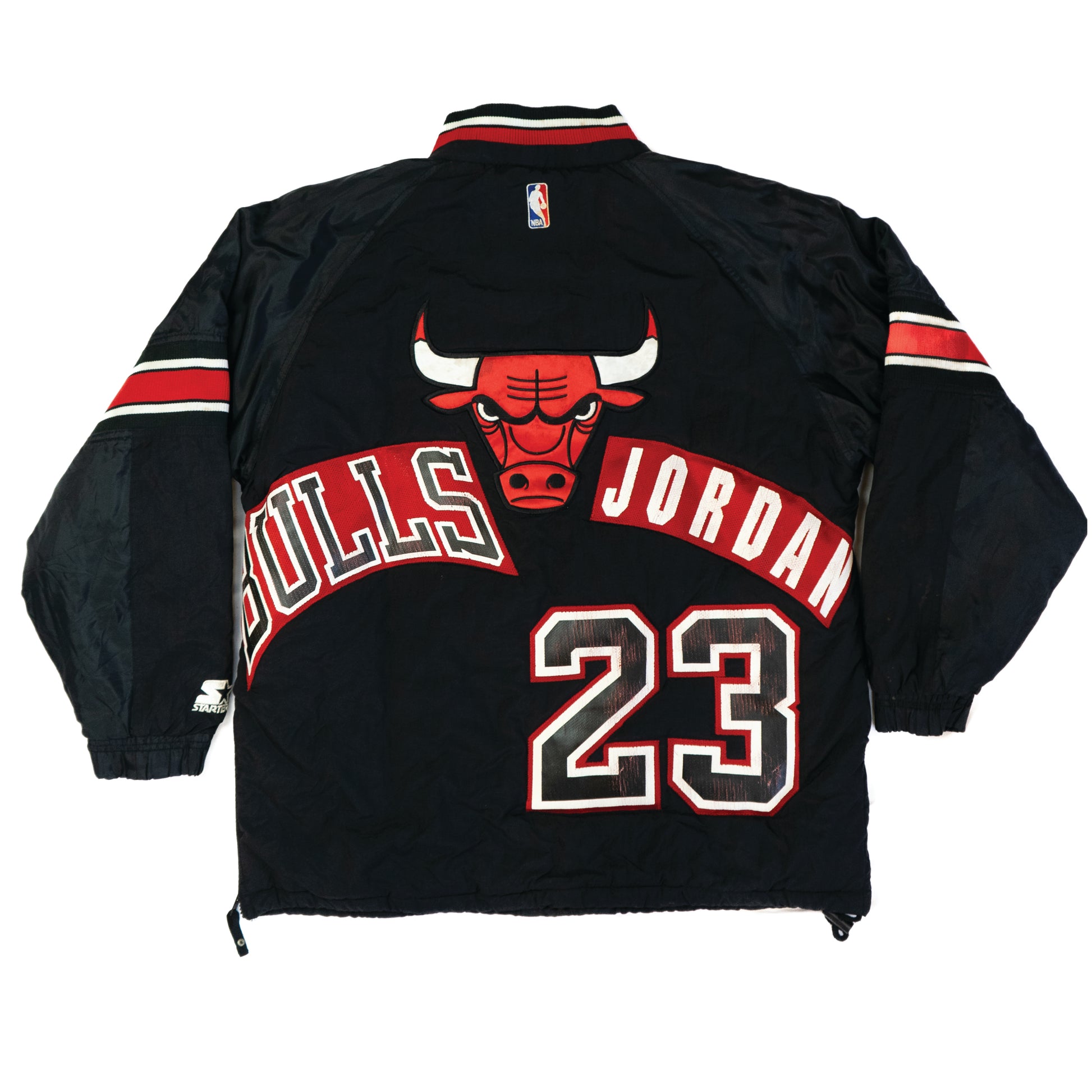 -Slight discoloration on Bulls logo and NBA logo on the back of the jacket (pictured)