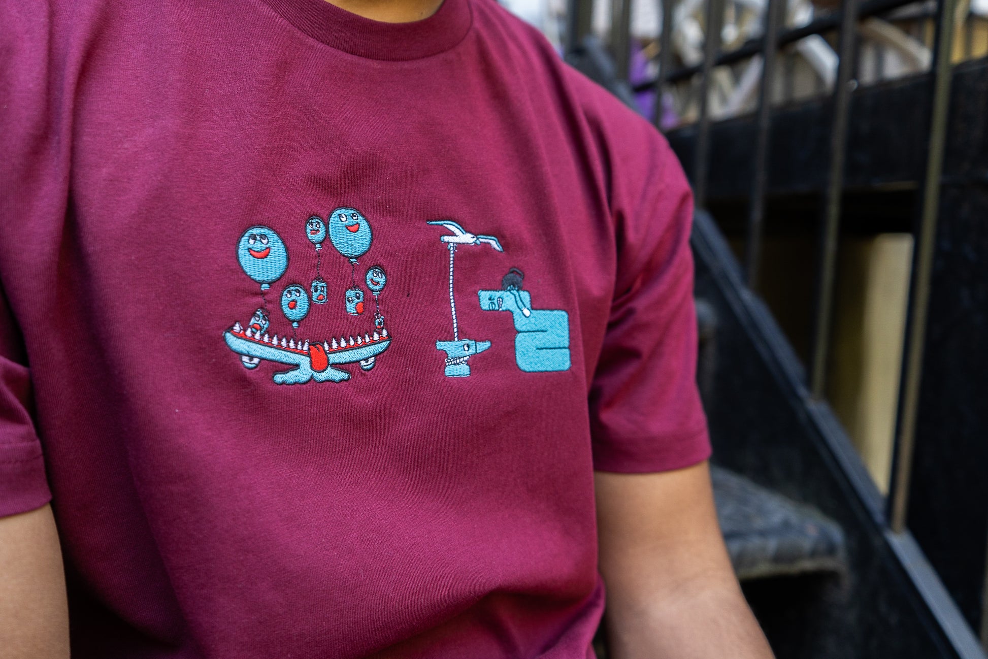 Embroidered rendition of Ryan Cronin's painting, "Fear and Circumstance"